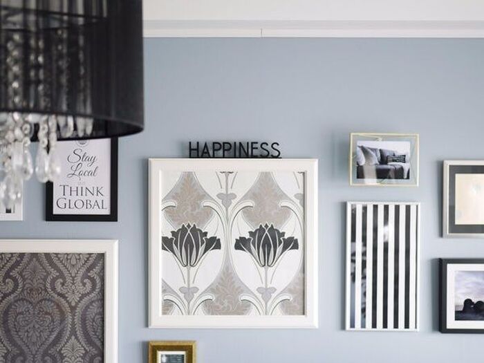 大きめのパネルはそれだけでも存在感があるので、あえて足元などのデッドスペースにアレンジしても。他の家具と高さを合わせれば、それほど違和感なく飾れます。