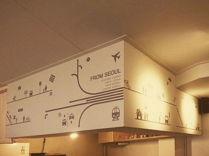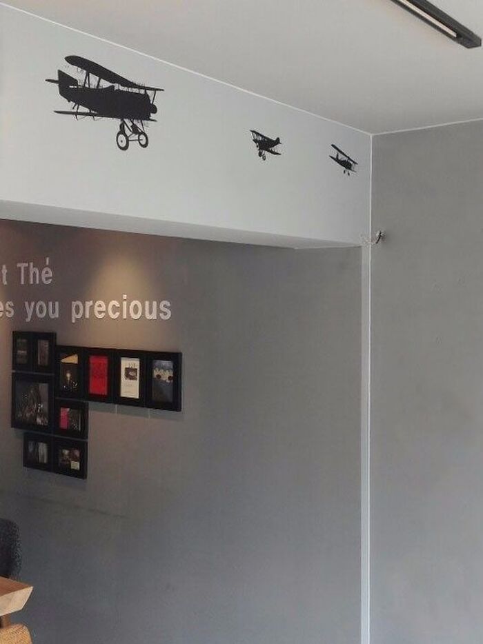 出っ張っている梁部分を利用し、まるで空を自由に飛んでいるような飛行機のウォールステッカーをぺたり。スペースの位置とデザインを考慮した、ユニークなアレンジです。