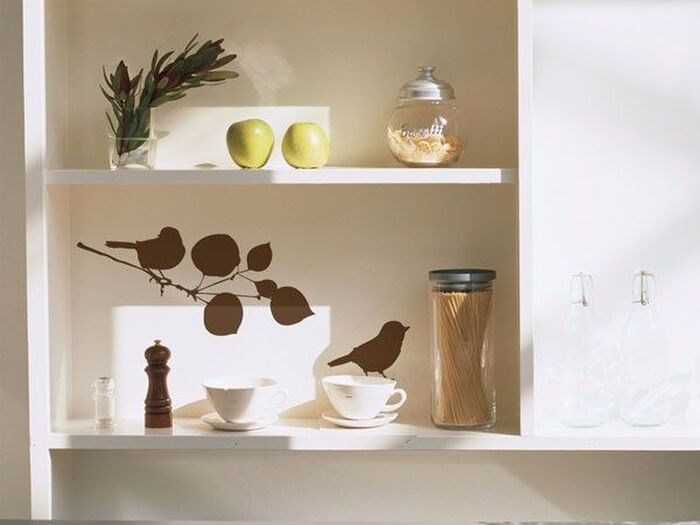 食器棚や本棚など、収納家具のちょっとしたスペースも、ウォールステッカーだったら簡単にアレンジできます。遊び心たっぷりに飾ってみませんか?