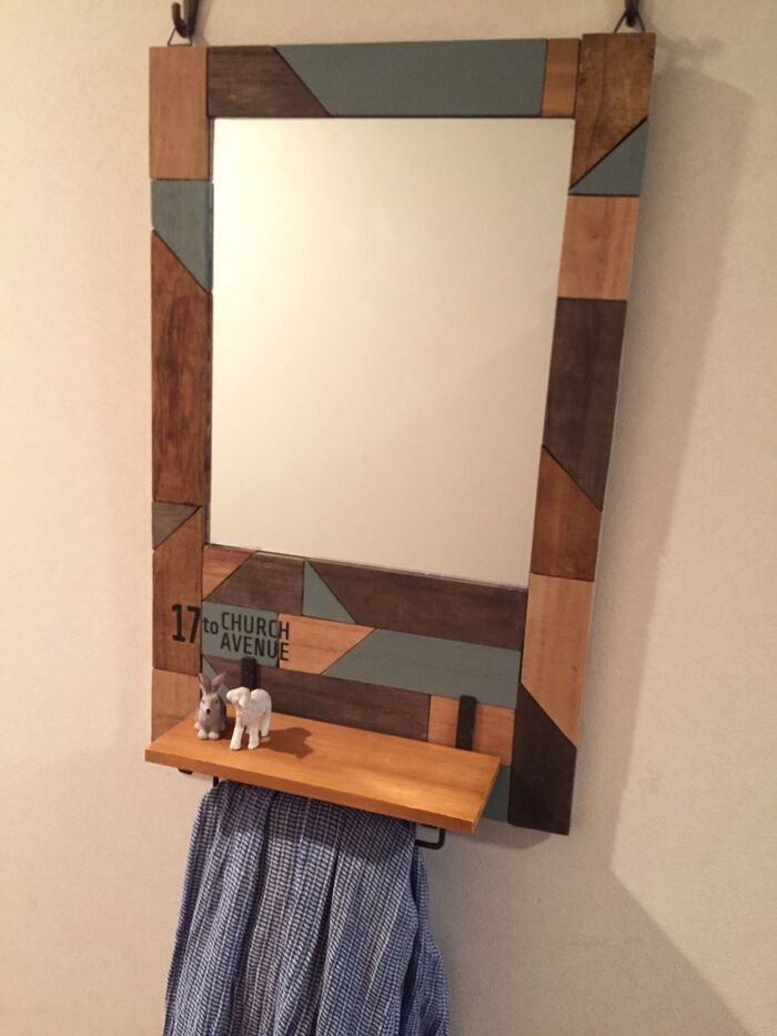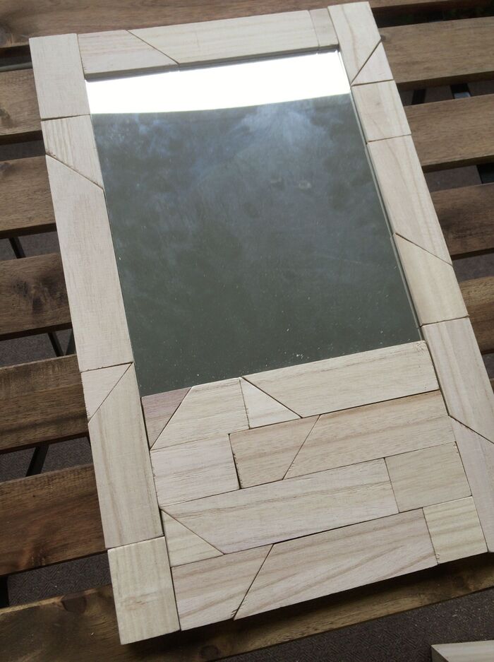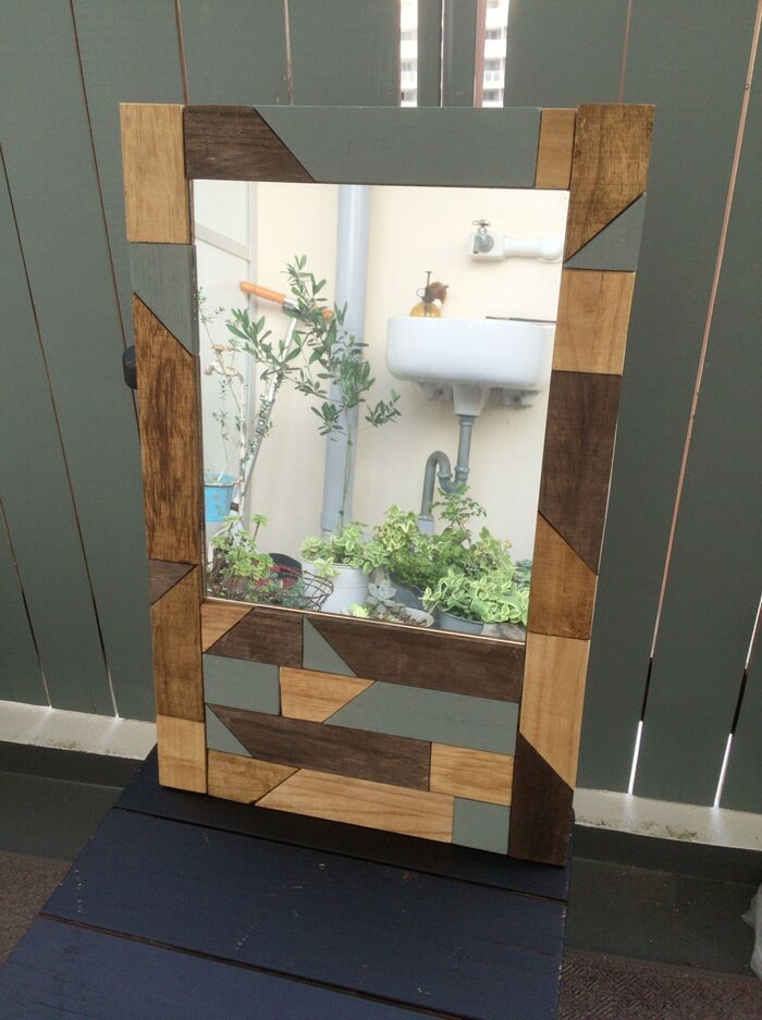 ばらしたすのこを適当に切り、パズルのようにミラーのすき間を埋めていきます。