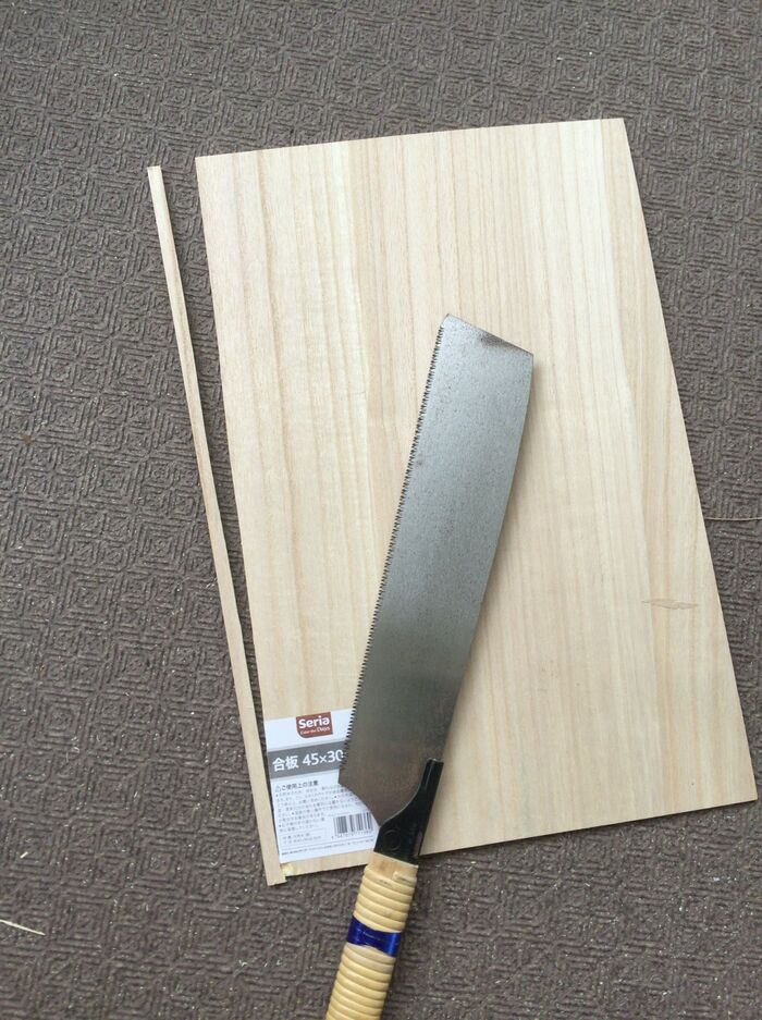 ↑の行程でもし少しベニヤが余った場合はノコギリでカットします。
