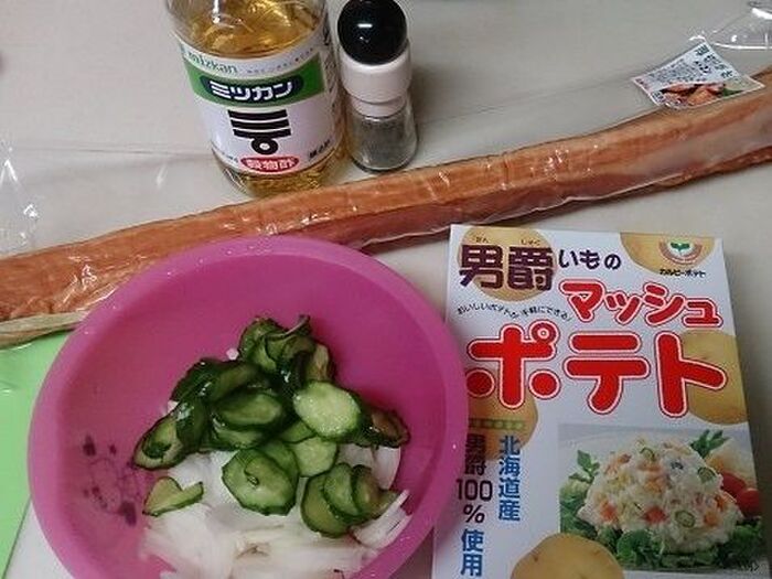 まずは、玉ねぎは薄くスライスして水にさらし