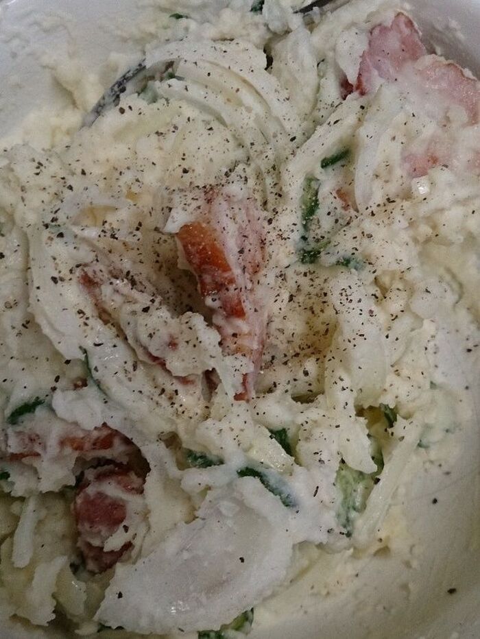 普通のポテトサラダより混ぜていて少し硬いかな?ぐらいの分量にします。