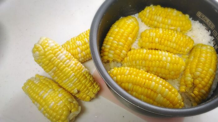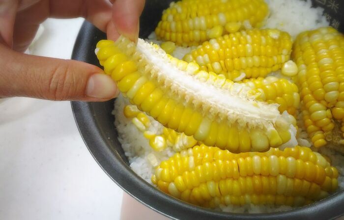 剥いたモロコシをご飯全体に混ぜ込んだら出来上がり☆