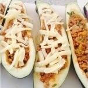 ナスに詰めていき、半分にピザ用チーズを乗せます。