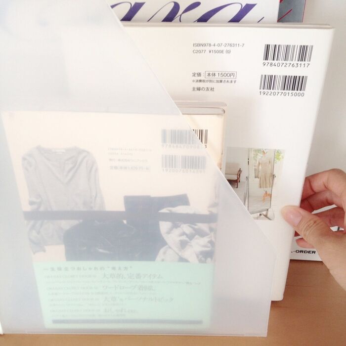 本を隠してすっきり収納したいときはファイルの背面を手前に。