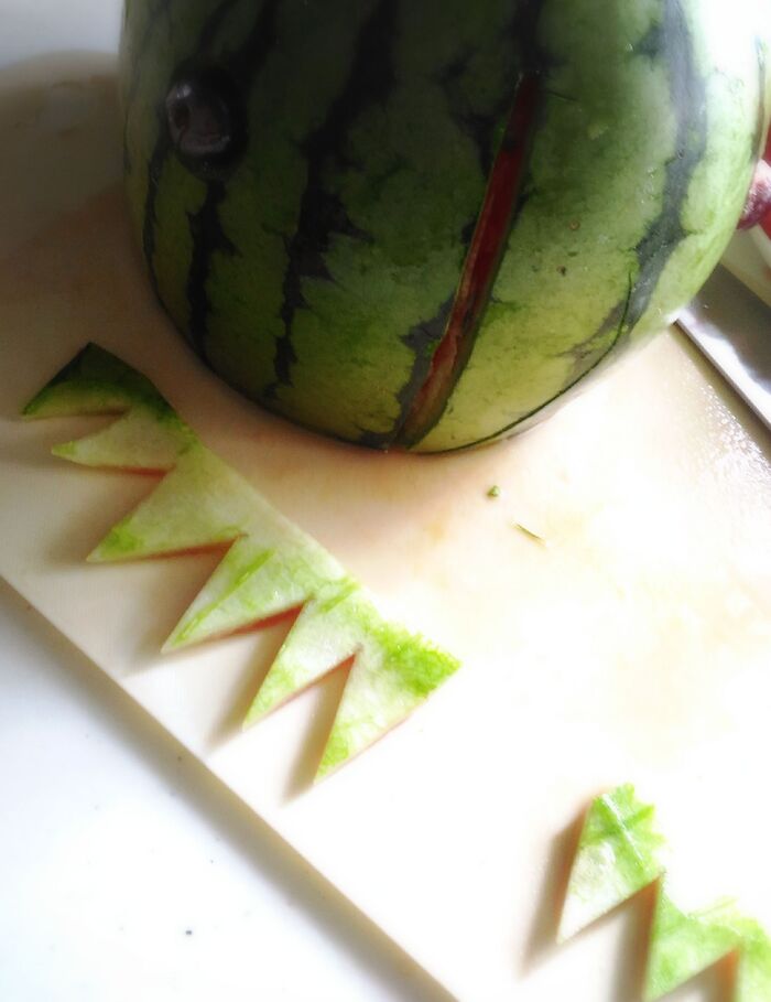 口を作った時のスイカの皮を使い、背びれ?みたいのを作ります。