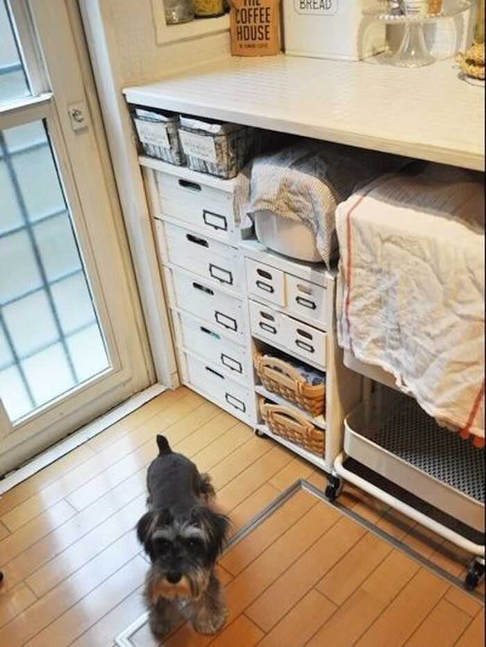 キッチンの引き出しボックスの上に並べました