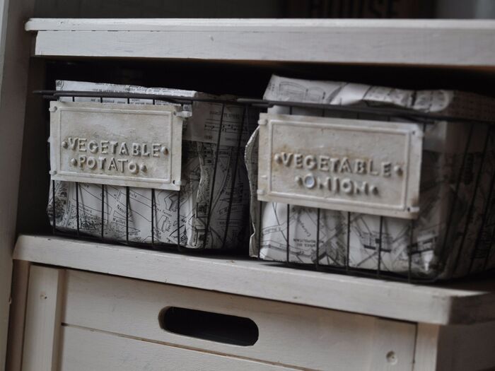 風通しの良いアイアンのかごと湿気も吸い取って