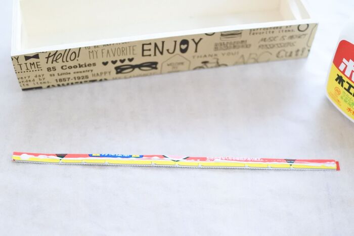 ウッドBOXの側面のサイズに合わせてペーパーを切り取ります