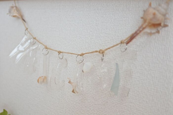 お好みで文字部分にも小さい貝殻やシーグラスを付けると可愛いです
