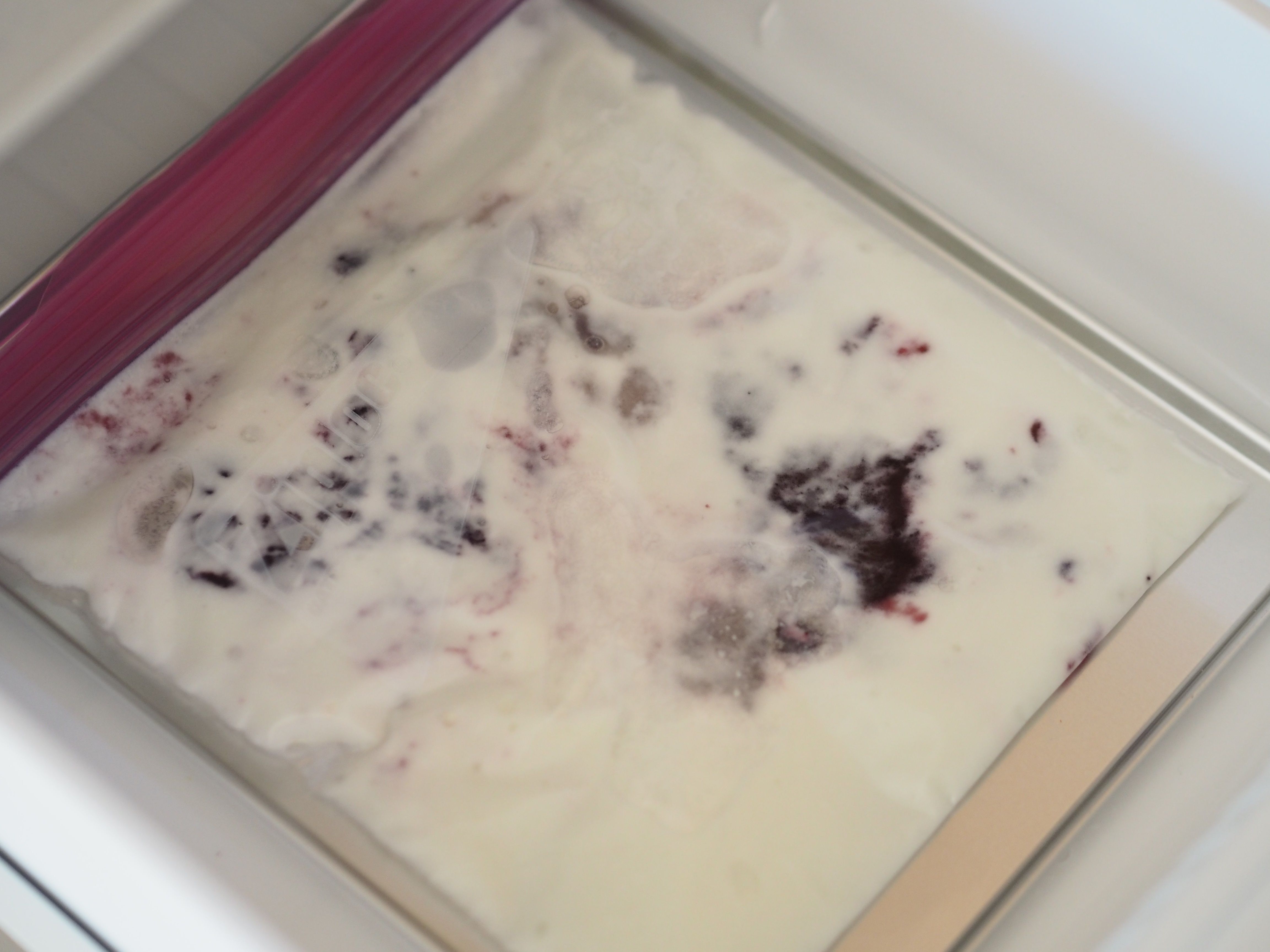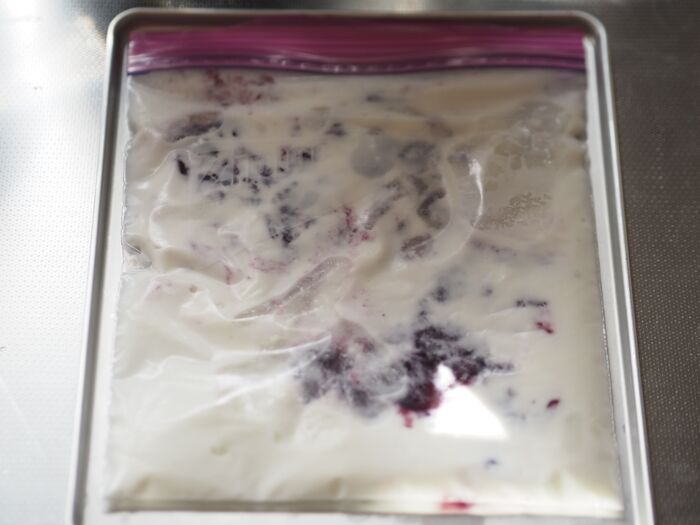 フリーザーバッグをもむだけでできる「フローズンヨーグルトのもみもみアイス」が出来上がりました☆