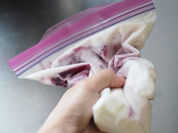 それはジップロックなどの「フリーザーバッグ」!これ1枚さえあればどんなアイスでも作れちゃいますよ☆