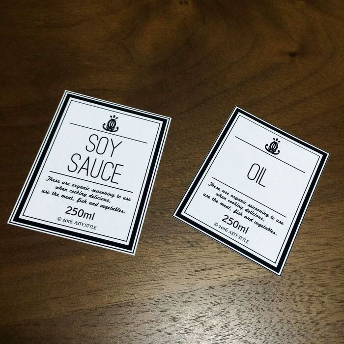 同じラベルで統一して、スタイリッシュな調味料ボトルになりました♩