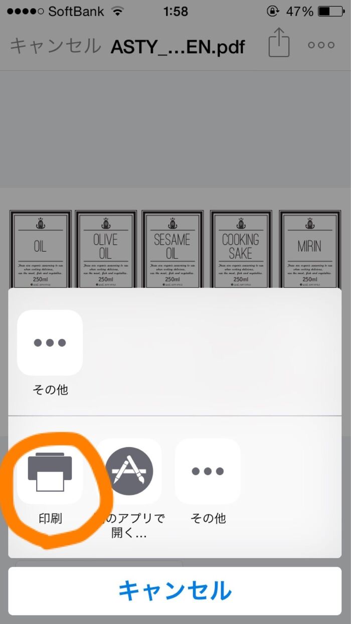 すると上記画面になりますので、オレンジの丸で囲んだプリンターのマークをタップし、印刷しましょう。
