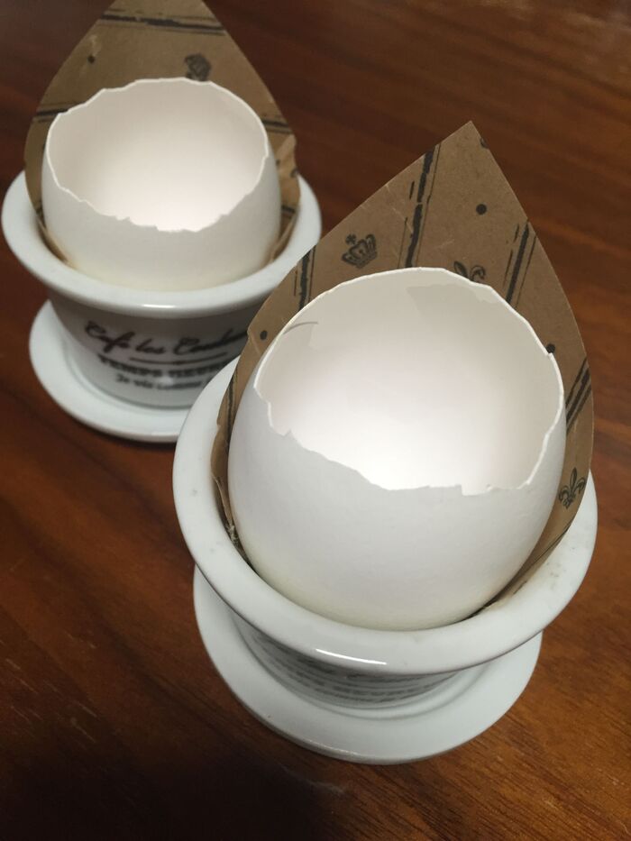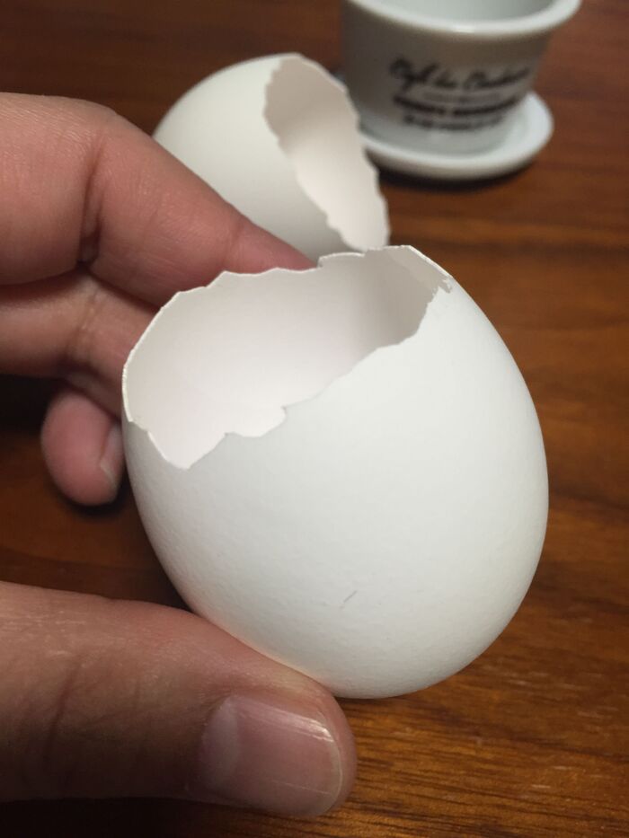 卵料理をするときに、卵の殻を少しだけ向くようにして割って卵を出します。中をキレイに洗って乾かしておきましょう