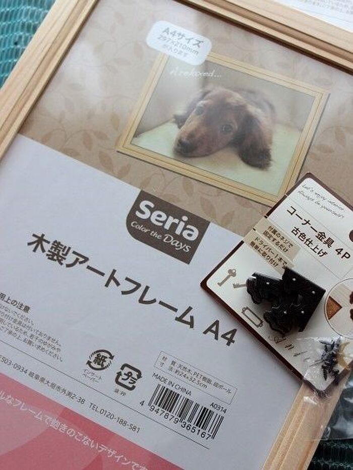 使うのは、セリアの木製アートフレームA4とコーナー金具4Pです。