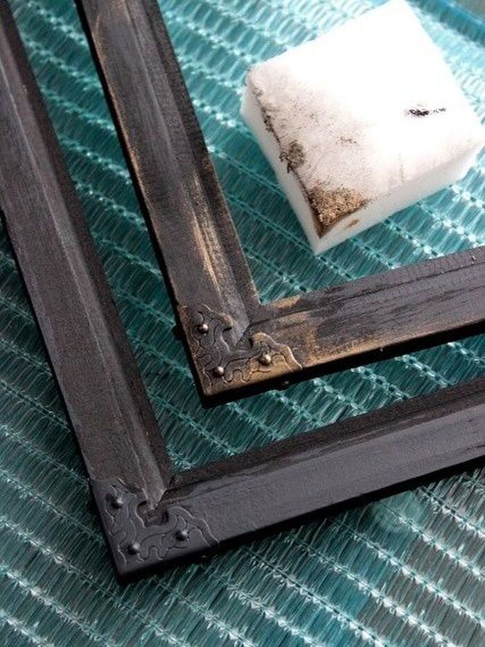 こうしてペイントすると、木製のフレームのはずが、古びた金属のフレームのように見えてきます♪