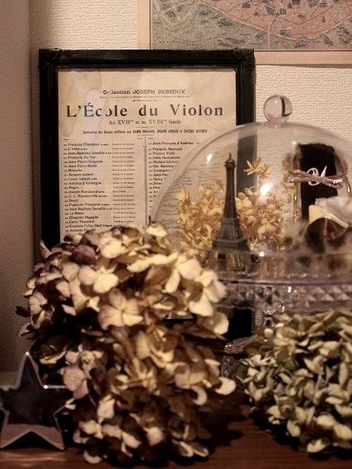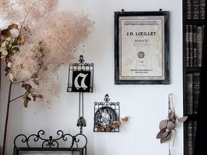 今回はブラックでアンティーク風ペイントしてみましたが、スモーキーピンクやグリーンなどで作ると、ナチュラル系のお部屋にも合いそうですね。