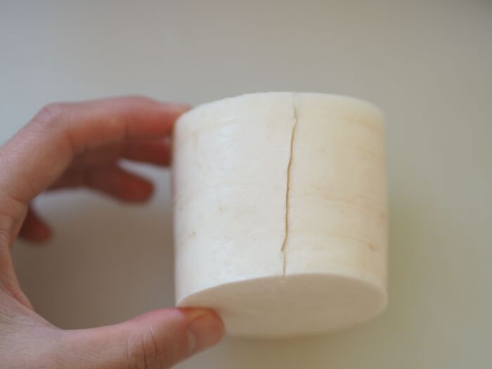 ここでは右手で写真を撮っていたため、左手のみが映っていますが、実際にやる時は両手でグイグイむいていきましょう。