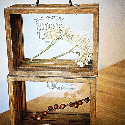 もし入れたい物が厚みのある場合は、今回3枚使った両面フォトフレームを1枚増やして頂くと空間が広くなるので、ご自分の飾りたい物によって厚みを調整して下さい。真ん中のガラスは入れずに取り外して使用します。