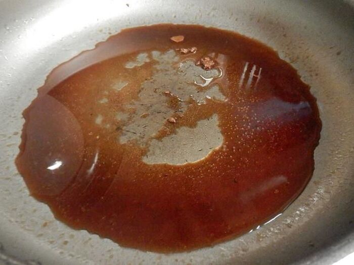 フライパンを拭き☆印の調味料を入れてひと煮立ちさせます。肉にソースをかけ、ニンニクチップと粗挽き黒コショウをかけて完成♪