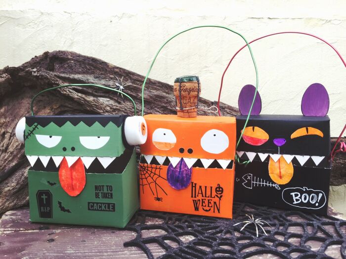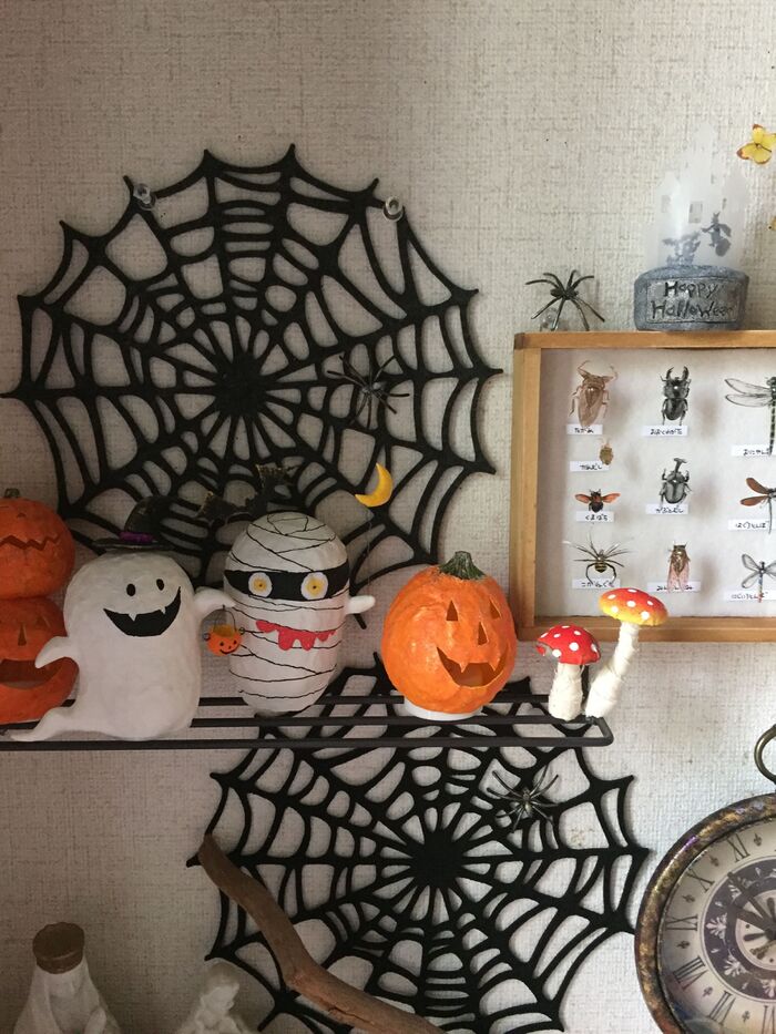 蜘蛛は、アクリル絵具の黒、金、銀などをスポンジでトントンして色付けしてます!