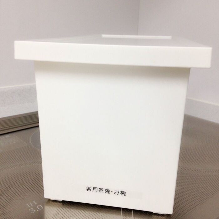 よく使う食器は、ゆとりをもって取り出しやすくおさめたいので、来客用のお茶碗とお椀は別の場所でボックス収納にしています。