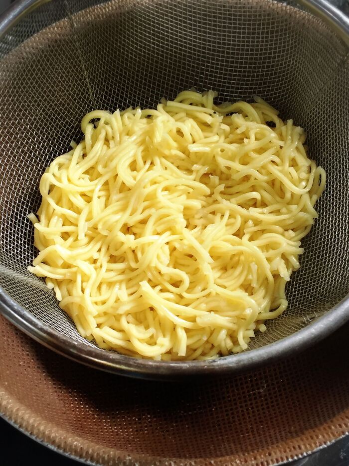 麺は袋に書かれてる茹で時間より1分少ない時間で茹でて下さい。