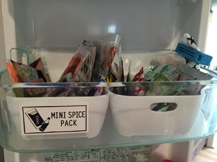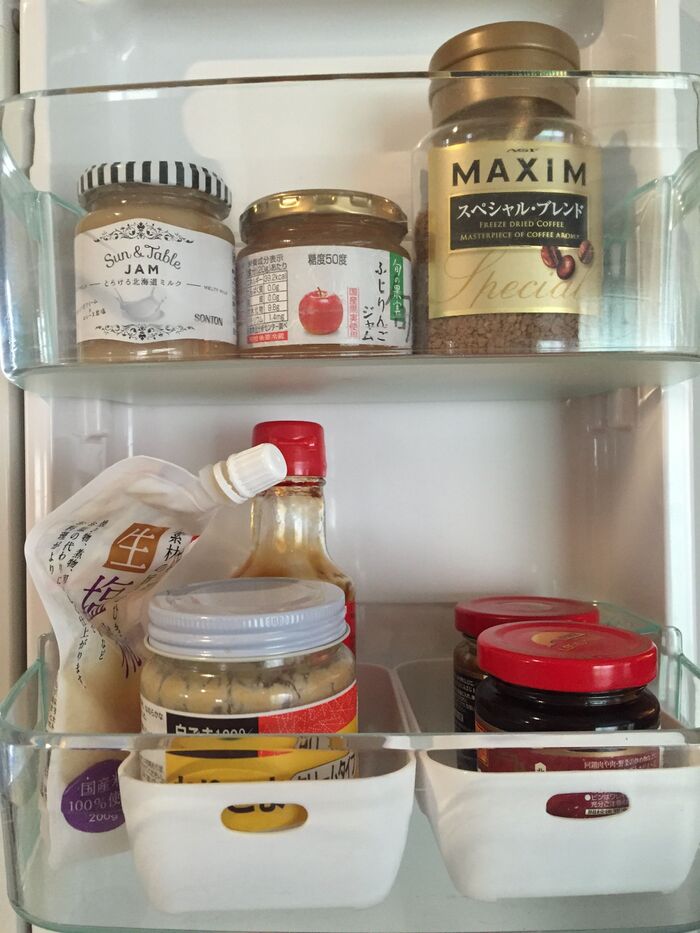 3段目は、牛乳、マヨネーズ、ケチャップ、ソース類。スイートチリソースも入れています。