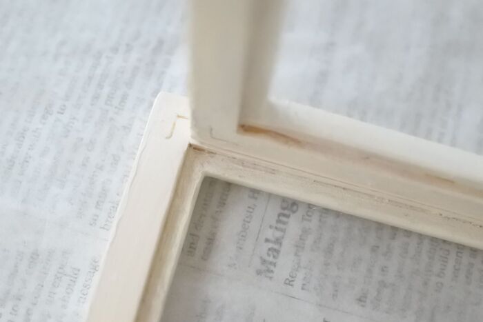 フォトフレームの枠と②でカットした板にお好みでペイントしたりニスを塗ります