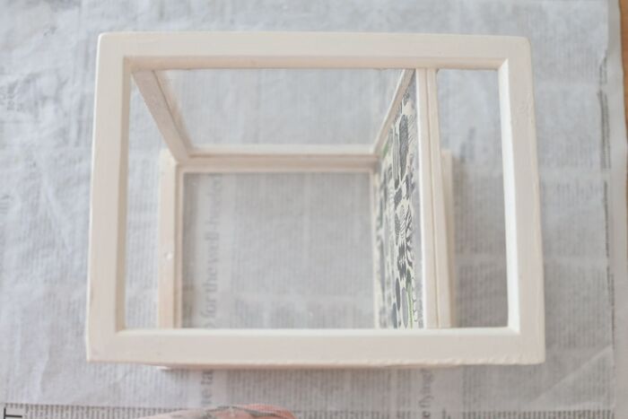 私はホワイトとアイボリーを混ぜたものを塗り、上から乳白色の水性ニスを塗りました
