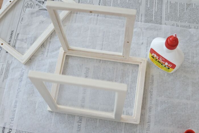 フレームの組み立ては普通の木工用ボンドだけでも問題ありませんでしたが、釘・ねじ等を組み立て部分に使えばさらに丈夫になりますね