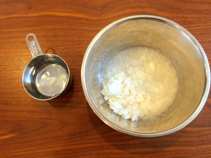 大根をおろします。このままだと辛味があるのでお水200ccと一緒に茹でます。辛味が抜けたらお皿に取り出しておきます。