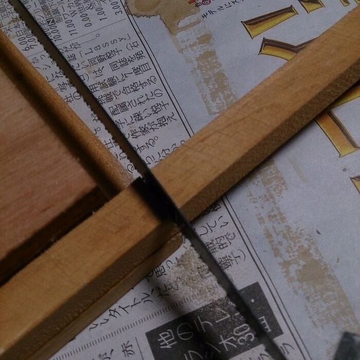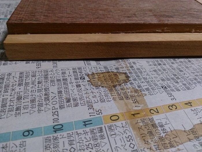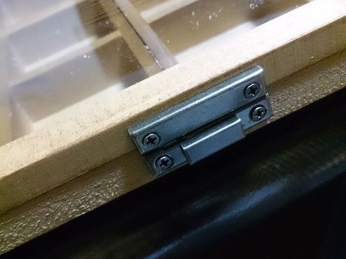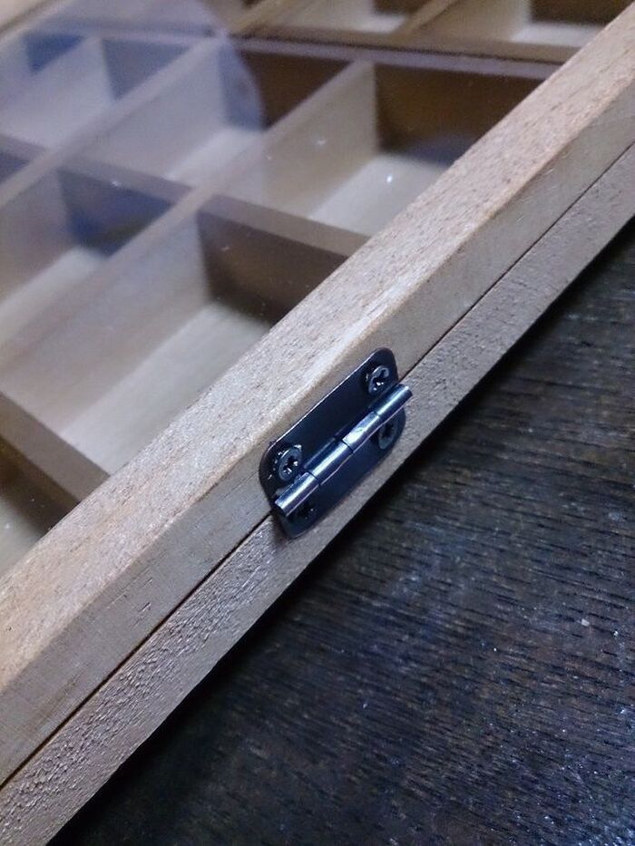 仕切り箱と蓋のバランスを見ながら蝶番を付けます。