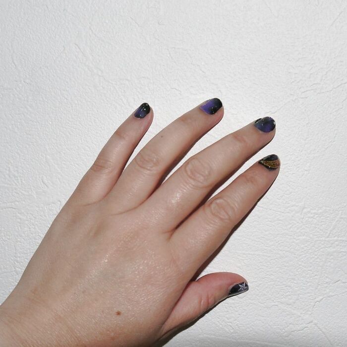 紺や紫、オレンジ・・・ハロウィンっぽいマニュキュア、買っても使わないかなぁ?ですが、シールなら手軽でいいですよね、¥100だし♪