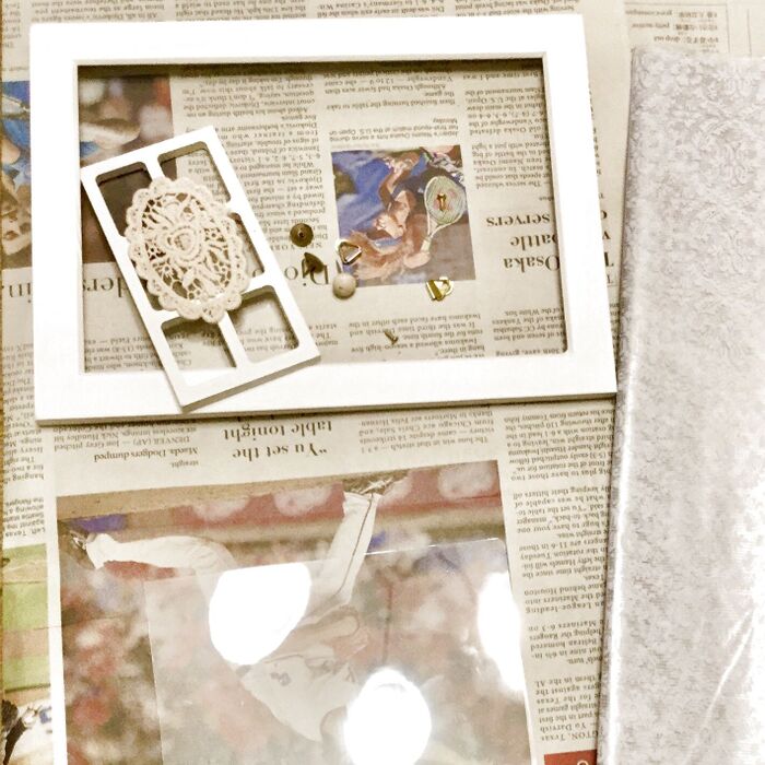 フォトフレームの中身を外して、プラスチック下敷き透明を同じサイズに切り、