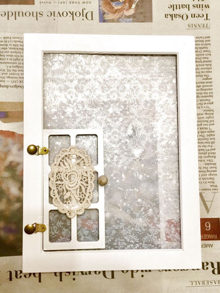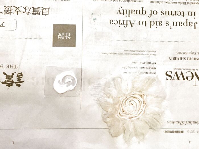 プラスチック下敷き透明をモチーフレースの大きさより小さく切り、木工ボンドでくっつけます。