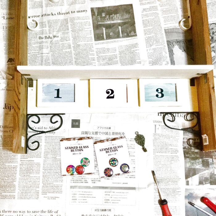 今回は、白はミルクペイントと、他は、セリアさんの塗料を使いました。