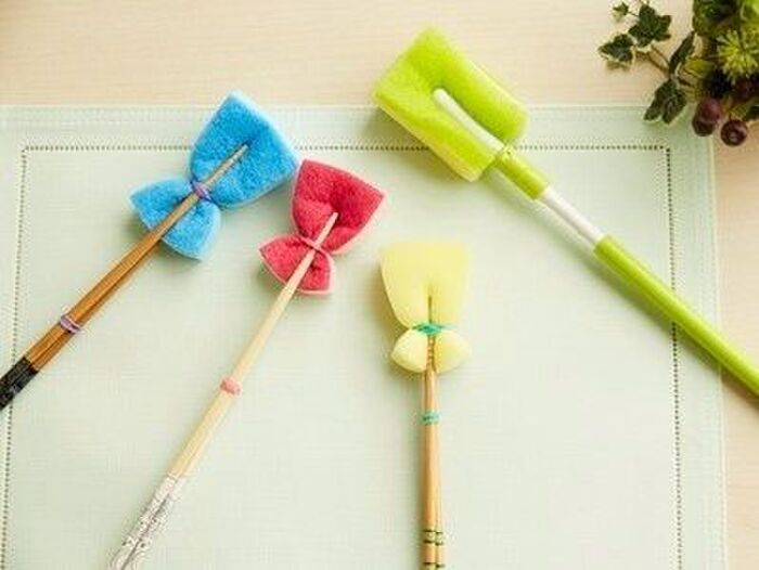 左3本が菜箸とスポンジで作ったもの。分解できるので、収納場所を取らないのもうれしいですね。