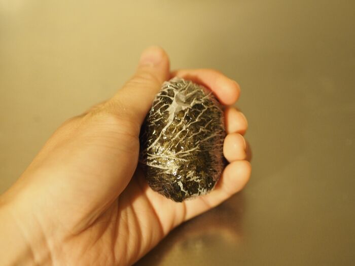 ラップを使って丸めるとやりやすいですよ!なお、後の作業のために硬めに丸めておくようにしましょう。