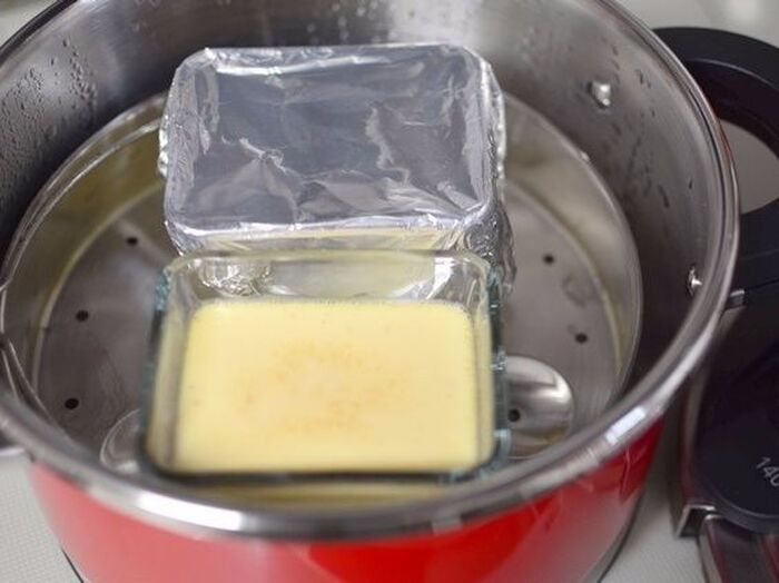 私は耐熱容器を使用しましたが、流し缶がある方は流し缶を使用してください。