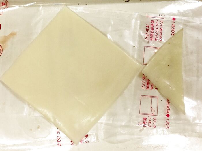 とけるチーズは器のサイズに合わせて、お魚の尻尾の部分を切ります。