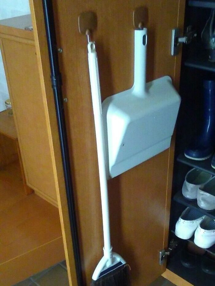 吊るしているので、倒れてくることもないですし、ほうきの先も曲がりません。(^_^)