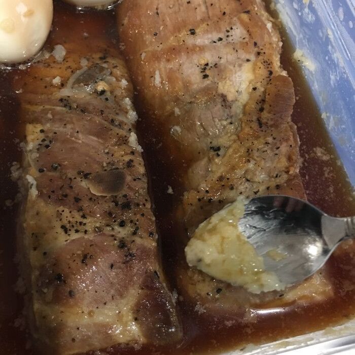 蜂蜜ダレは少しかけて、残りはフライパンでとろみがつくまで温めて焼豚にかけるとからんで美味しいです。