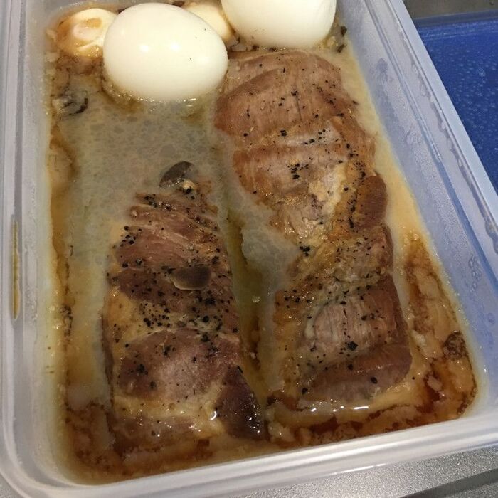 炊いている間にゆで卵を作り、炊けたらジップロックコンテナに入れ寝かす。