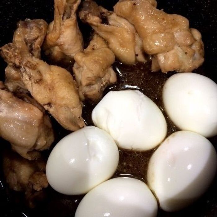 ③お肉が煮えたら火を止めてゆでたまごを入れてゆでたまごに味をつけるように、