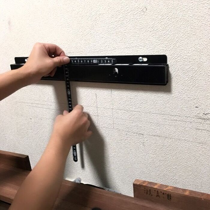 TV下は十字に下地が入っていたので、ブラケット2個使う予定でしたが、真ん中1個使い、左右は板に釘でうつことにしました。