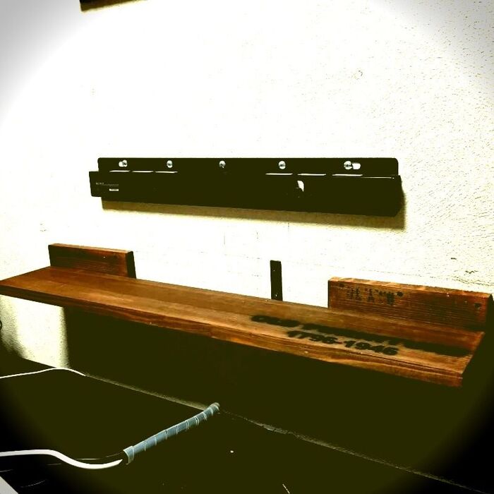 短い木材を両端に付ける利点は、最初下向きに付ける予定でしたが、釘で固定用の板のため下地に合わせるとスピーカーが置けなくなるので、上向きに取り付けました。