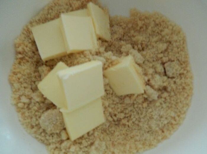 クッキーをくだいてバターと混ぜ型のそこに敷き詰め 冷蔵庫で冷やす
